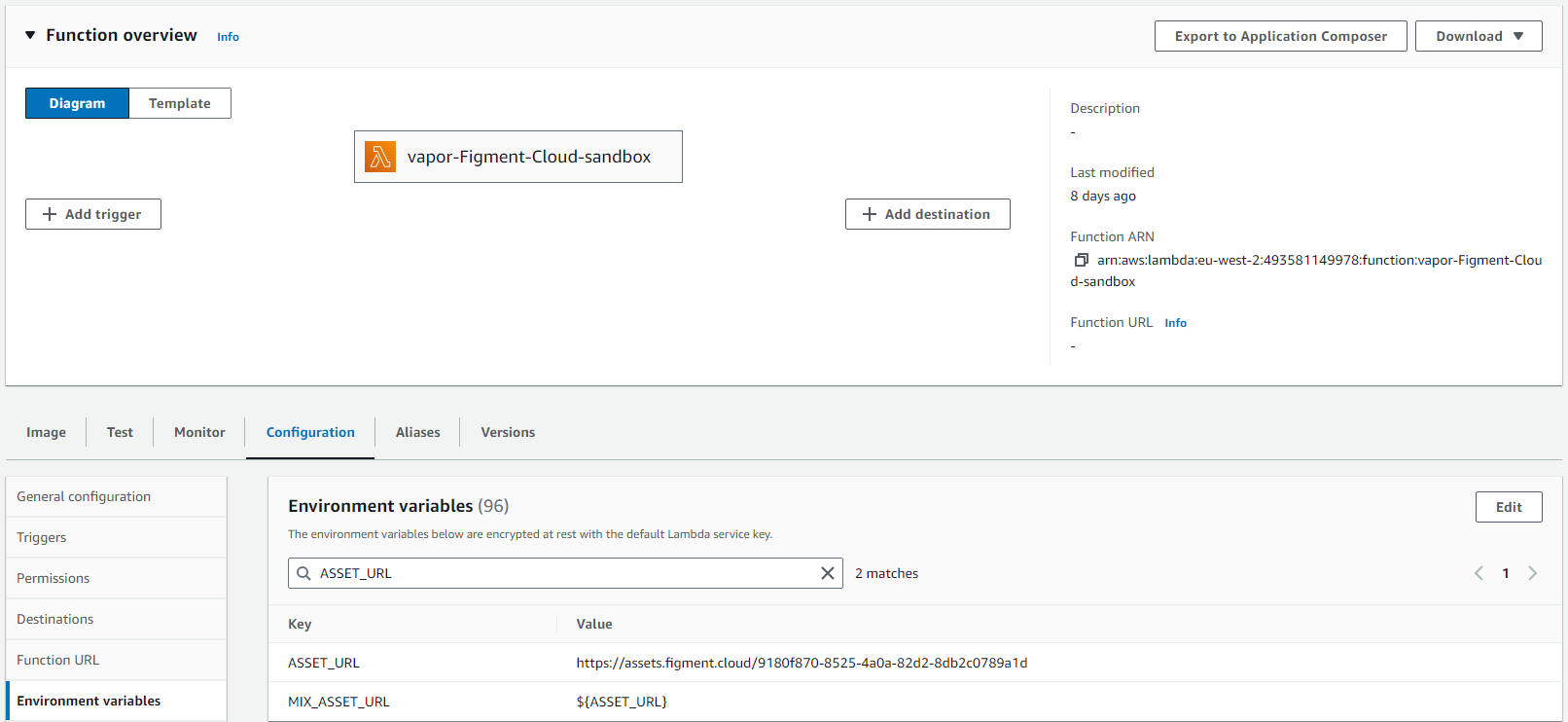 Each Vapor deployment will get it's own asset folder in S3 which is exposed in cloudfront, this value is also passed to the Lambda environment.