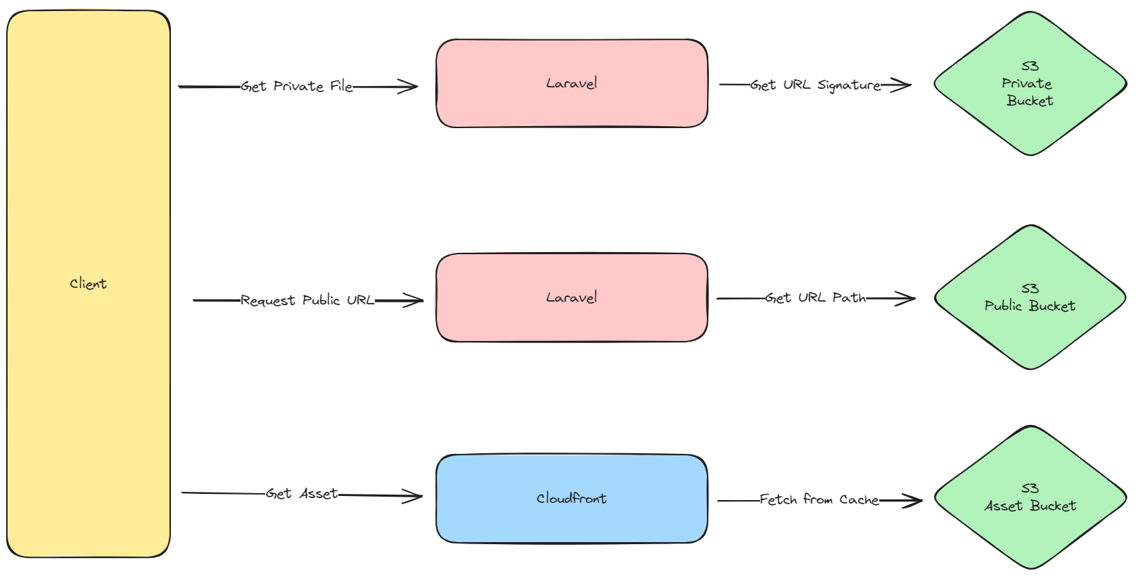 This package helps prevent images and assets being loaded via the Lambda service, also providing caching service. laravel-Vapor is a npm package that helps access assets that are stored in cloudfront. During Vapor Deployment assets from the public folder of the root Laravel codebase is extracted and deployed to the vapor store bucket in S3. These files are them omitted from the docker image when built/deployed with Vapor.